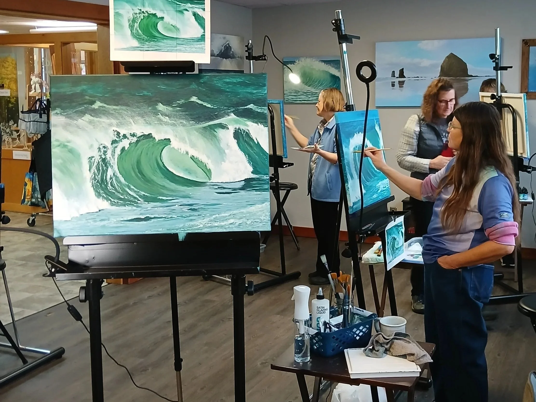 Tammy’s philosophy is simple: each painting is a chance to share a moment of beauty and connection. She brings that same warmth to her classes and to the studio, where visitors are encouraged to browse, ask questions, and see what she is working on.